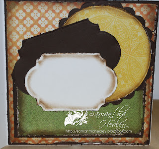 I stamped my image in Gathered Twigs distress ink and embossed with some holographic powder to give it a twinkle. I added just a little colour with some distress markers. I used an 8 x 8 card base and matted and layered brown cardstock and some patterned papers which I had distressed and inked around the edges. I added a piece of hessian behind the image and some silky crush brown ribbon which I twisted and looped along the bottom of the card. I finished by doing the inside of the card to match.